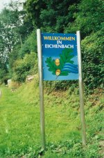 | Im Jahr 2000 wurden in Eichenbach Ortseingangsschilder in einem modernen Design aufgestellt. |